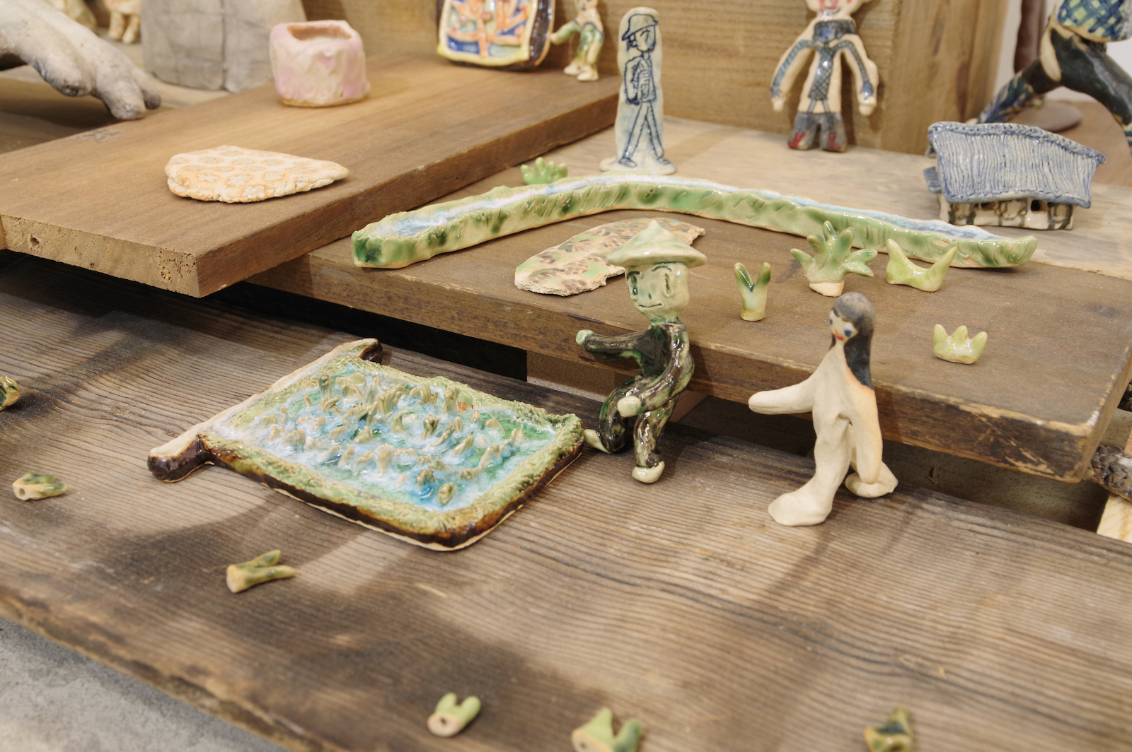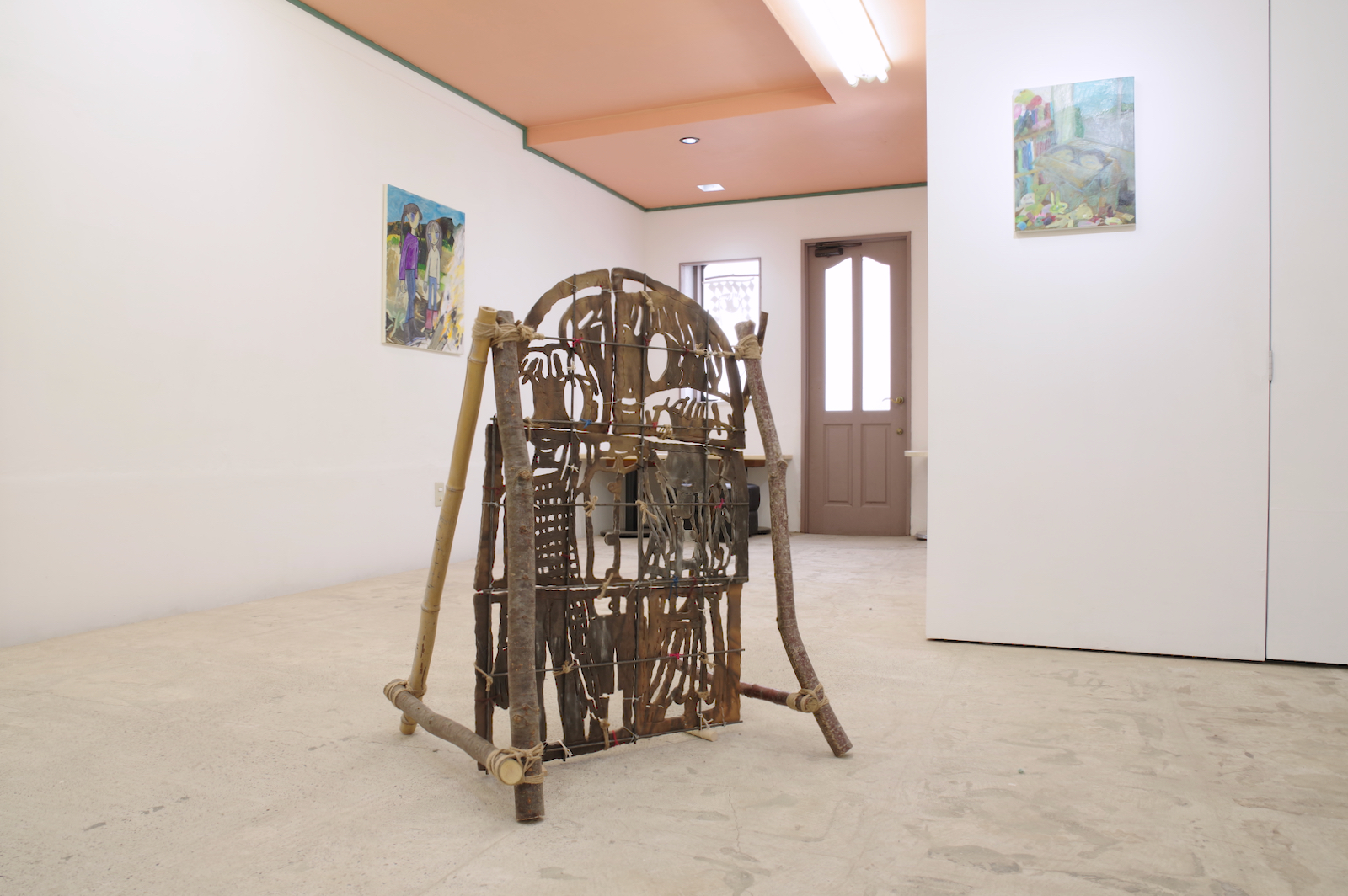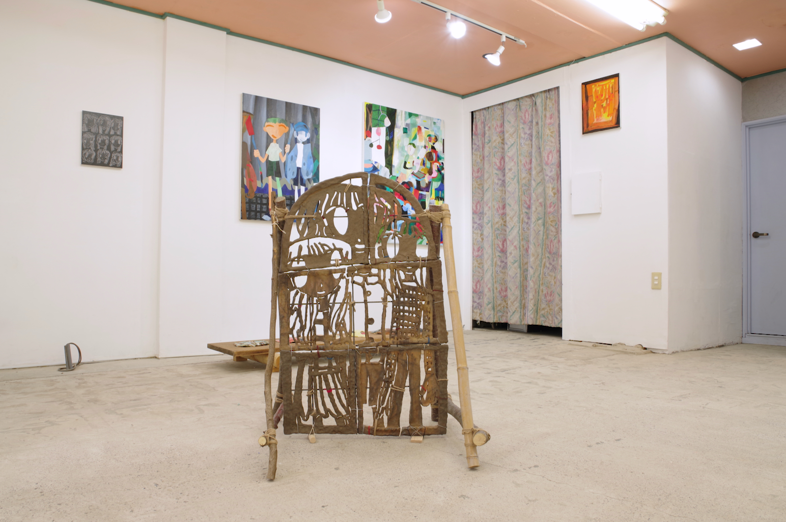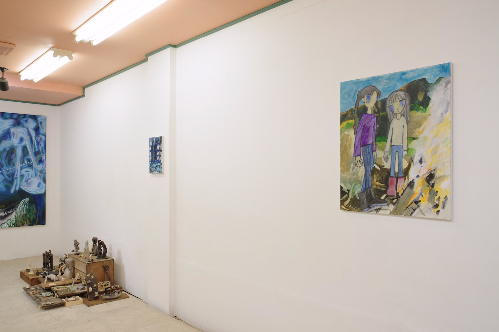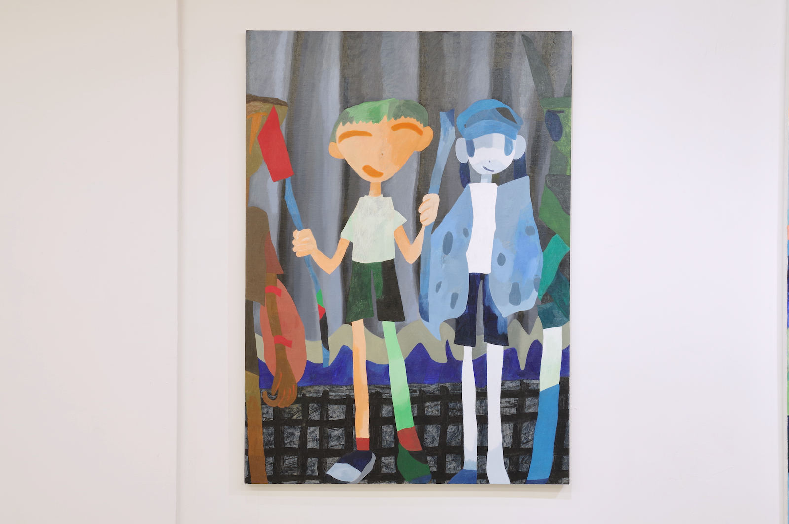 手持ちの服が大量にあって散らかっている。みんな買う時には理由があって自分が選んだ服なのに、なぜか着たい服が見つからないし、なにがお気に入りかわからなくなってしまった。 なんで大切にできないんだろう、という気持ちはあるのに、もっと大切にできるものを新たに求めてしまう気持ちもわく。きっとその大切にできそうなものを得ても、豊かさに到達できない底なしの不足感は解消されないだろう。 そもそも本当に不足しているのだろうか。 やとうはるかの作品は、日々の生活から得られる身体の動きが活かされているように見える。犬の散歩や子どもとの生活、農作業の手つきなどが身体を形作り、そのような経験をした者としての描画が可能となる。それらの動きと描く動きは全然違うように見えても、どこかで繋がっているように感じさせる。 子どもの世話が忙しい時は色数が絞られたり、自分の時間に余裕が持てるようになった時は一気に色数が増えたり、生活が自然と作品に影響してしまうほど、同じ軸の上にあるがゆえに動きもリンクしているのだろうと思う。 やとうはるかの絵にはいくつかの時間が重なり合って見えてくる。その瞬間だけを捉えているのではなく、群像として描かれた人々が各々の時間を持っていたり、毎日繰り返される行動が積み重なって1つの場面となっている。彼女の演劇での経験がそうした画面の時間感覚を生み出しているのだろう。 「今あるものを使い切る」という話を彼女とした。使えるものは永く使うし、無駄にしない。新しいものがなくとも今あるものだけで十分足りる。 ものだけではなく、経験に対してもそのような姿勢を感じさせる。いままでの経験や行為を彼女は大切にし、使い続けている。 生きている中で感じる、なにかが足りないという得体の知れない不足感は、彼女の作品や生活観をヒントにすることで解消されるかもしれない。 幾山隆生
