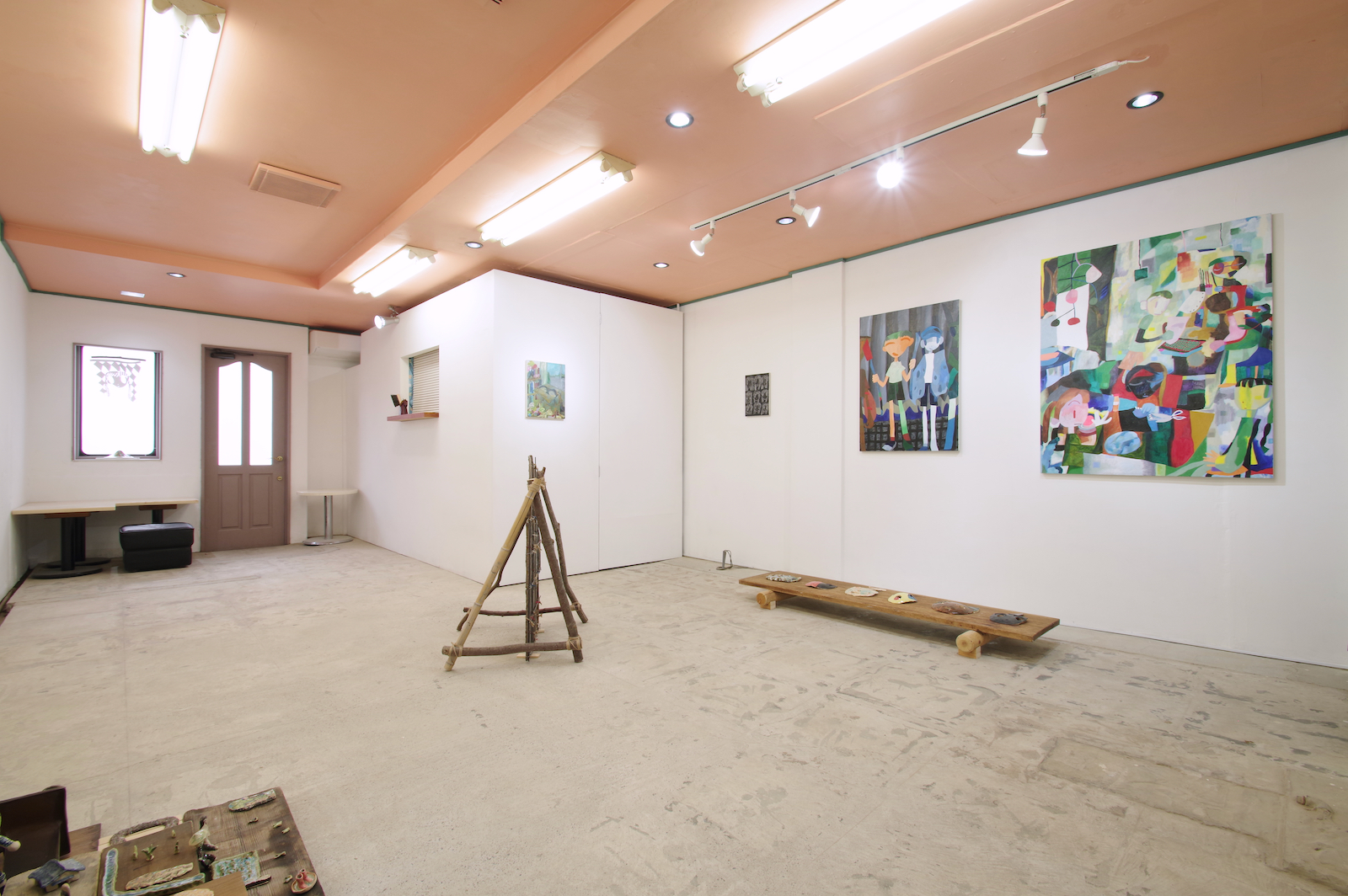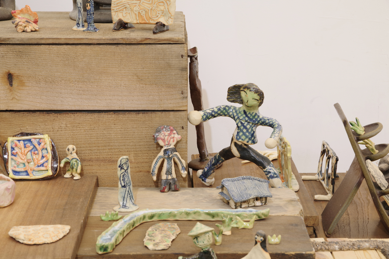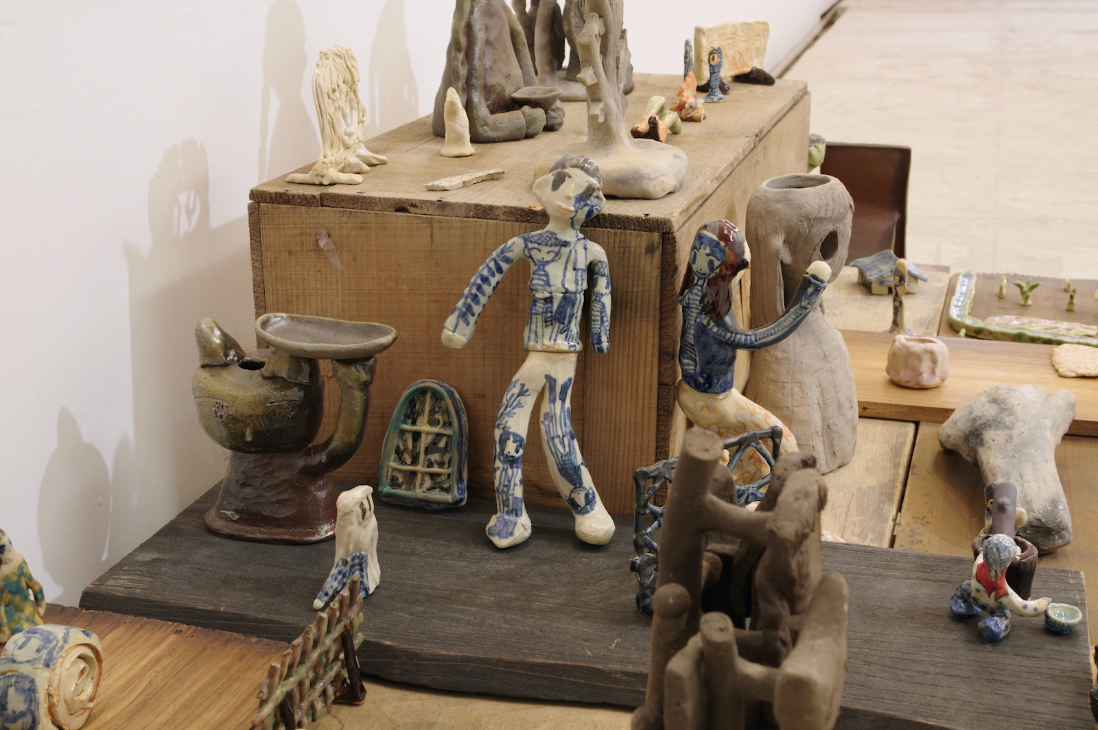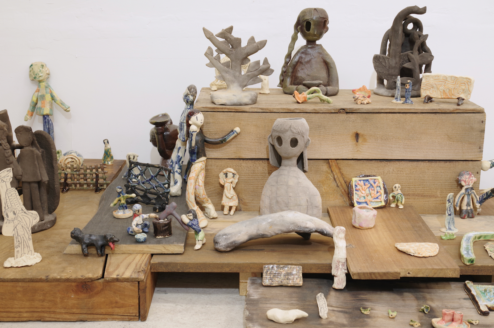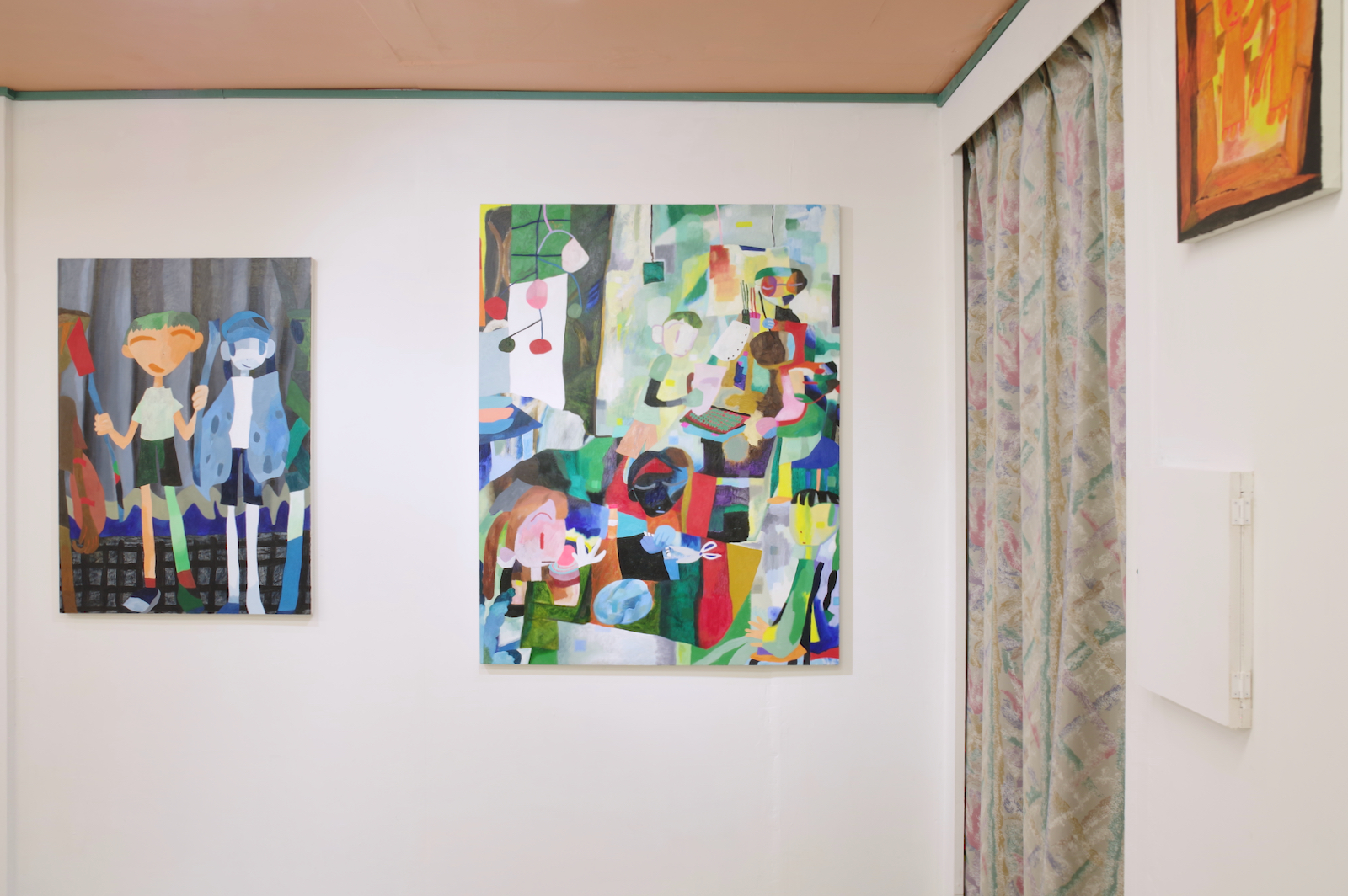 手持ちの服が大量にあって散らかっている。みんな買う時には理由があって自分が選んだ服なのに、なぜか着たい服が見つからないし、なにがお気に入りかわからなくなってしまった。 なんで大切にできないんだろう、という気持ちはあるのに、もっと大切にできるものを新たに求めてしまう気持ちもわく。きっとその大切にできそうなものを得ても、豊かさに到達できない底なしの不足感は解消されないだろう。 そもそも本当に不足しているのだろうか。 やとうはるかの作品は、日々の生活から得られる身体の動きが活かされているように見える。犬の散歩や子どもとの生活、農作業の手つきなどが身体を形作り、そのような経験をした者としての描画が可能となる。それらの動きと描く動きは全然違うように見えても、どこかで繋がっているように感じさせる。 子どもの世話が忙しい時は色数が絞られたり、自分の時間に余裕が持てるようになった時は一気に色数が増えたり、生活が自然と作品に影響してしまうほど、同じ軸の上にあるがゆえに動きもリンクしているのだろうと思う。 やとうはるかの絵にはいくつかの時間が重なり合って見えてくる。その瞬間だけを捉えているのではなく、群像として描かれた人々が各々の時間を持っていたり、毎日繰り返される行動が積み重なって1つの場面となっている。彼女の演劇での経験がそうした画面の時間感覚を生み出しているのだろう。 「今あるものを使い切る」という話を彼女とした。使えるものは永く使うし、無駄にしない。新しいものがなくとも今あるものだけで十分足りる。 ものだけではなく、経験に対してもそのような姿勢を感じさせる。いままでの経験や行為を彼女は大切にし、使い続けている。 生きている中で感じる、なにかが足りないという得体の知れない不足感は、彼女の作品や生活観をヒントにすることで解消されるかもしれない。 幾山隆生